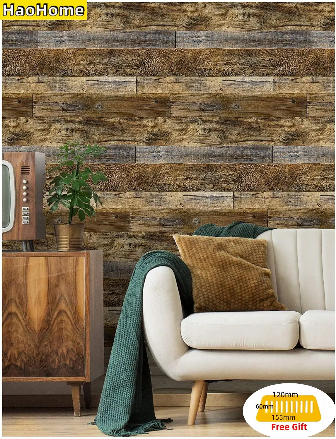 Name: Self-Adhesive Wallpaper Plank Vinyl Stick Wood Home-Decorative Haohome Peel Brown And